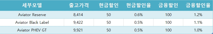 링컨 에비에이터 Aviator 가격 및 할인 프로모션